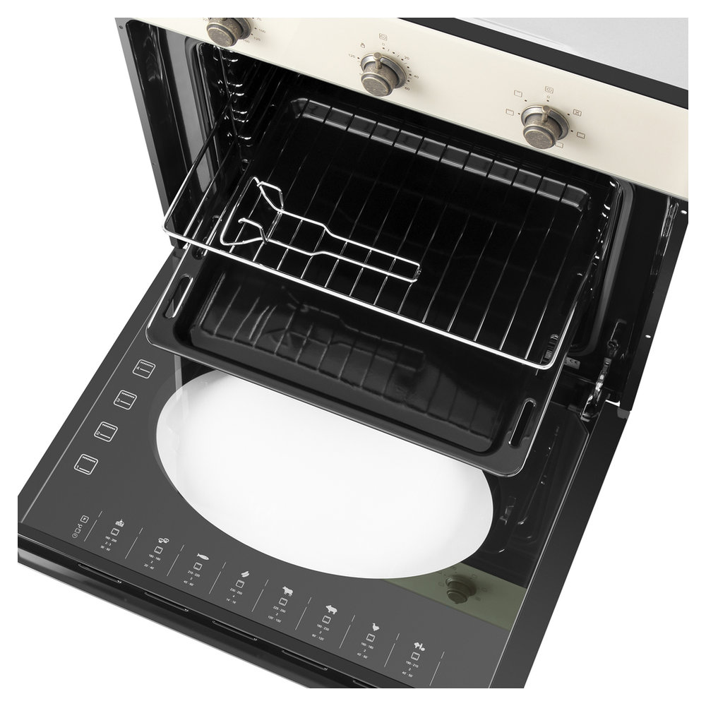 - Фронтальная панель дверцы: Из высококачественного тонированного жаропрочного стекла цвета слоновая кость.
