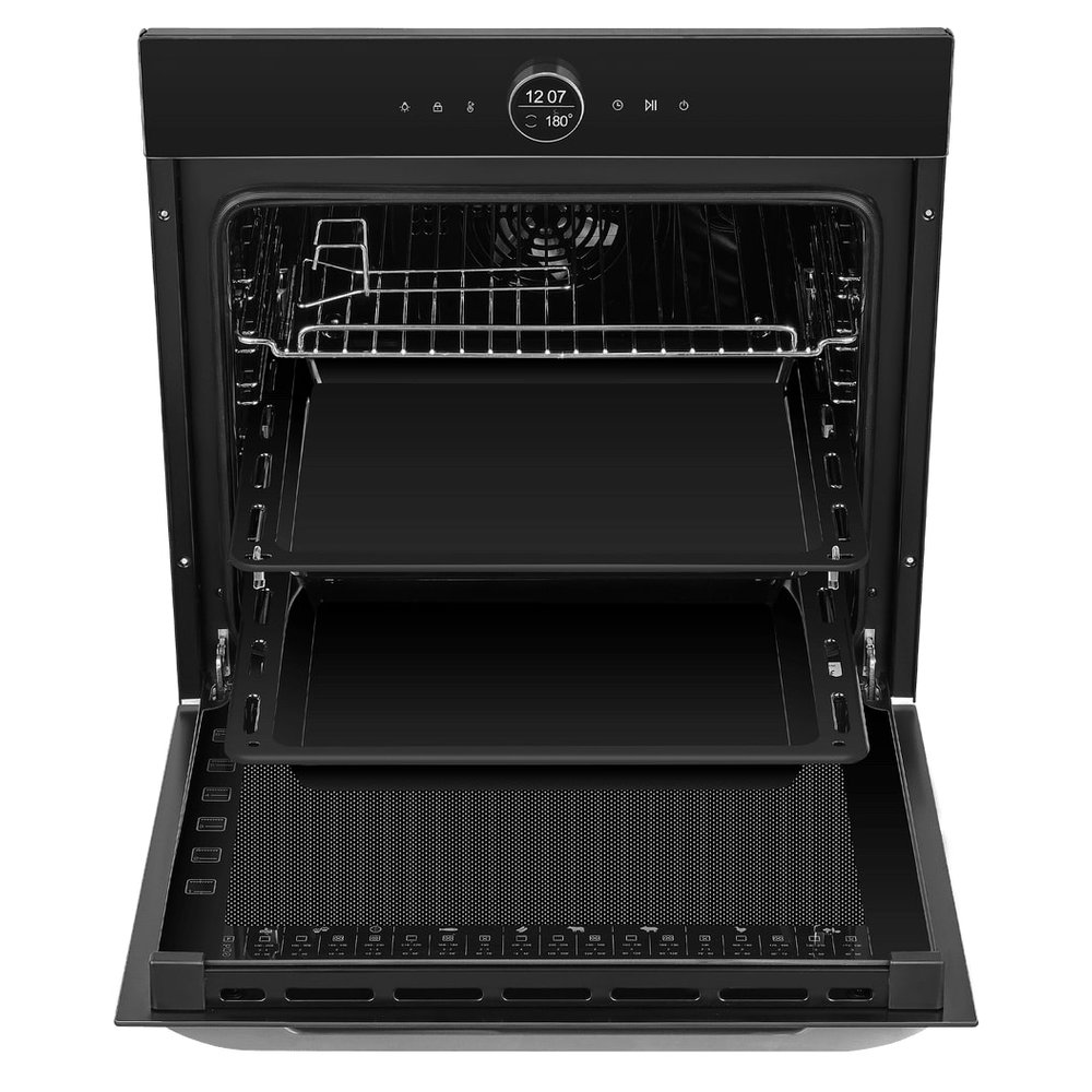 - Надежная защита интерьера и семьи: Комбинация «холодного фронта» и тангенциального охлаждения гарантирует, что кухонная мебель не пострадает от высокой температуры, а дети могут безопасно находиться рядом с работающей духовкой.