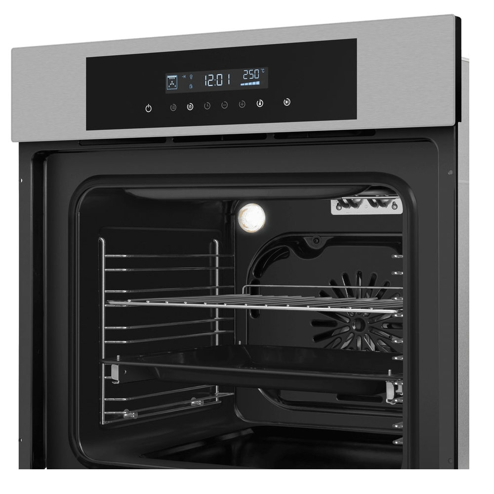 - Равномерное распределение тепла: Вентилятор, встроенный в заднюю стенку, обеспечивает постоянную циркуляцию горячего воздуха, устраняя «холодные зоны». Это критически важно для выпечки, запекания мяса и приготовления блюд, требующих одинаковой степени готовности со всех сторон.