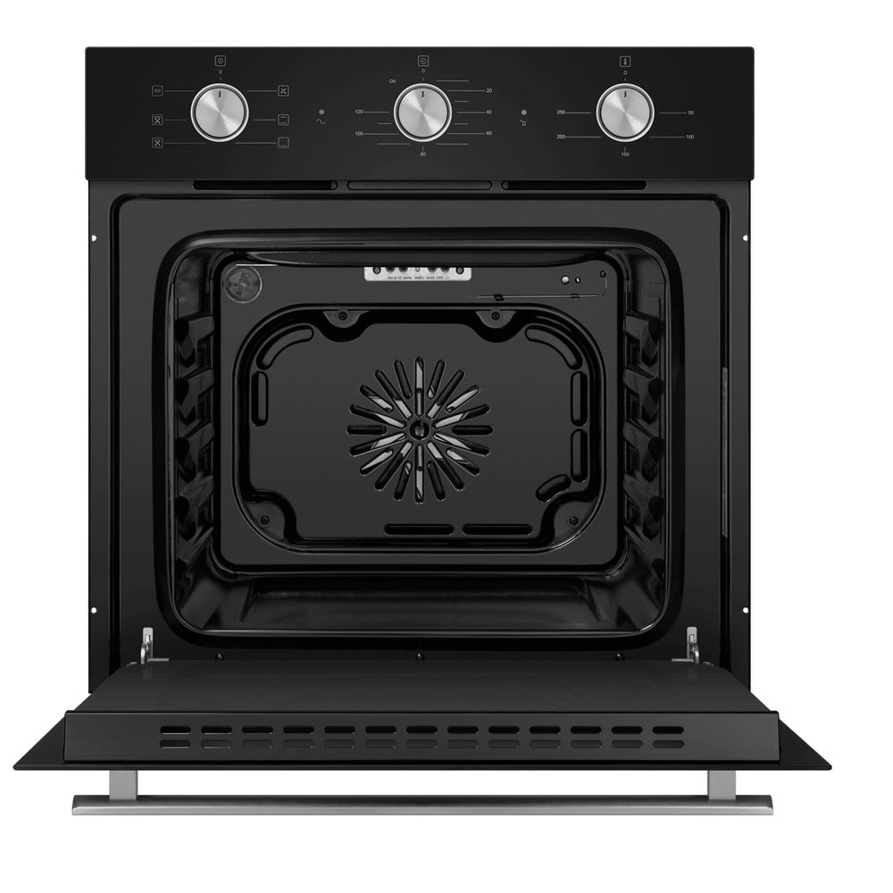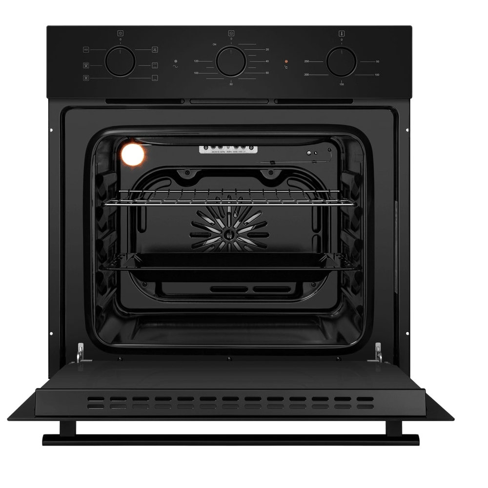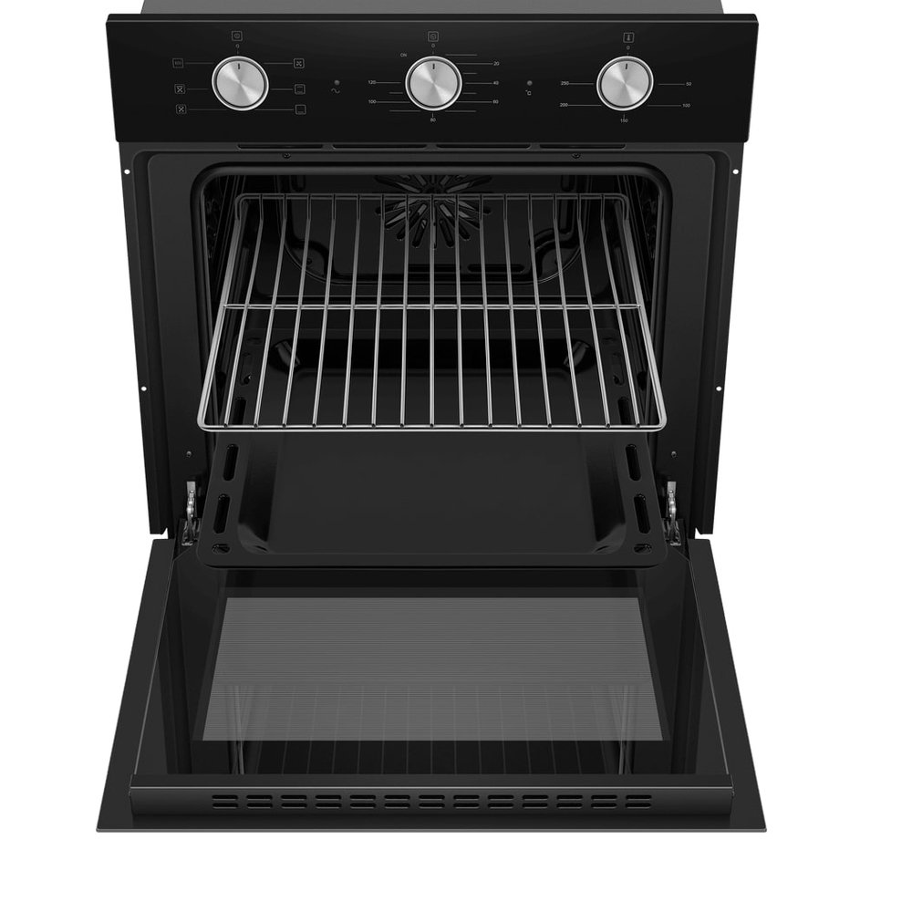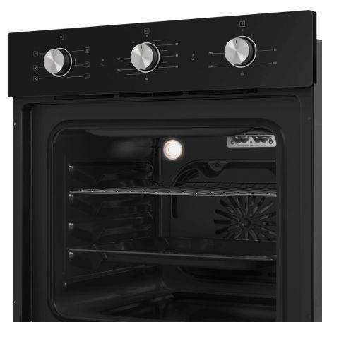 - Современный дизайн и безопасность: Лаконичный черный корпус придает технике стильный и универсальный вид. Тройное остекление дверцы с технологией холодного фронта обеспечивает эффективную теплоизоляцию и безопасность, сводя к минимуму риск ожогов при случайном касании во время работы.