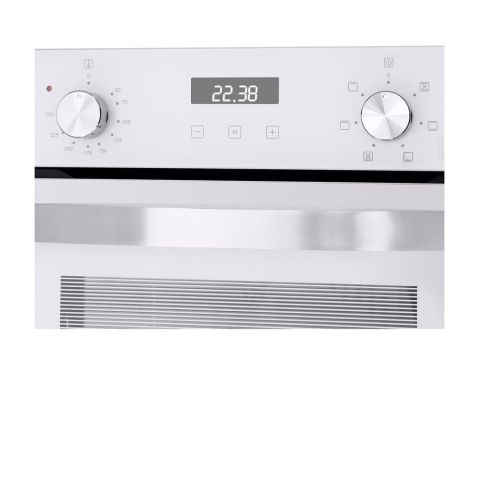 Духовой шкаф Maunfeld EOEM516W — это компактное и стильное решение для небольшой кухни. Модель китайского производства выделяется оригинальным дизайном в классическом белом цвете с элегантными серебристыми ручками, что позволяет ей гармонично вписаться в светлый или скандинавский интерьер. Прибор имеет узкую ширину всего 45 см, что делает его идеальным для встраивания в ограниченное пространство, при этом он предлагает полноценный рабочий объем 51 литр. Это позволяет с комфортом готовить несколько блюд одновременно. Управление интуитивно и современно: электронная система сочетает сенсорный интерфейс и тактильные поворотные переключатели для точной настройки.