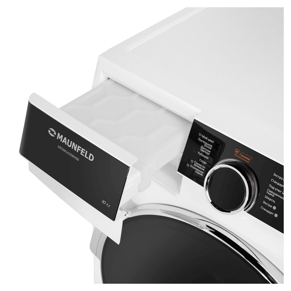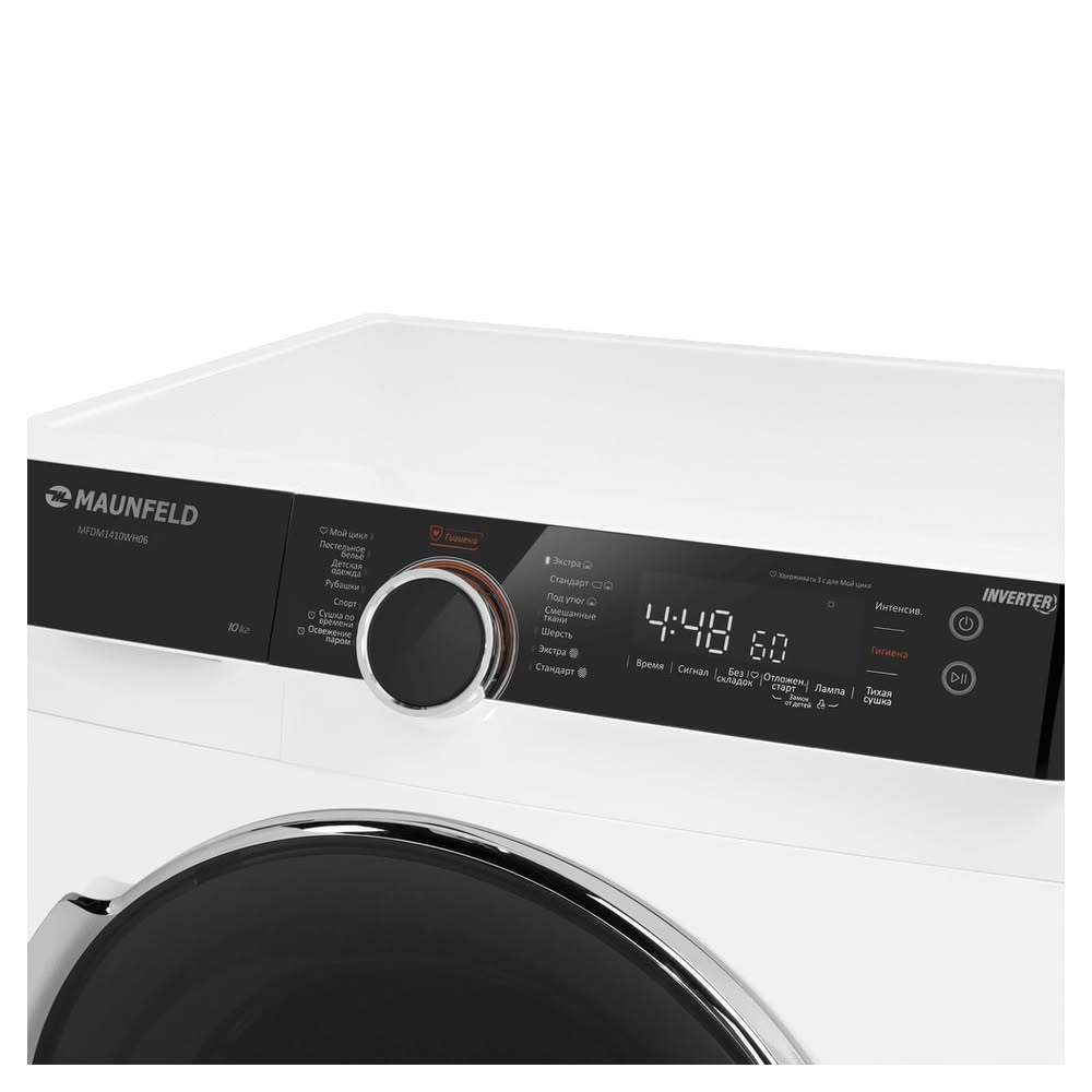 Сушильная машина Maunfeld MFDM1410WH06 — это флагманское устройство в области энергоэффективности и производительности, предназначенное для профессиональной сушки белья в домашних условиях. Модель выделяется современным дизайном и максимальной загрузкой 10 кг. Ее ключевой особенностью является высший класс энергопотребления А+++, достигнутый благодаря синергии усовершенствованного теплового насоса и инверторного двигателя. Управление осуществляется через сенсорную панель, а 14 программ обеспечивают универсальный уход за любым типом ткани.