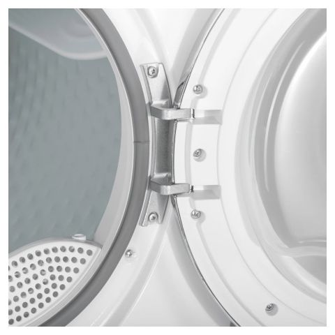 • Барабан с технологией Anti-Crease: Внутренняя поверхность барабана и специальные ребра спроектированы так, чтобы аккуратно приподнимать и переворачивать белье во время вращения. Это предотвращает его сбивание в комок, обеспечивает равномерную сушку и естественный эффект антисминания.