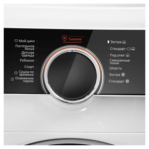• Базовые ткани с регулировкой: Хлопок (с выбором степени сушки: Экстра, Стандарт, Под утюг), Синтетика, Смешанные ткани.