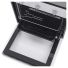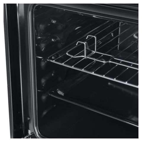 На внутреннем стекле расположены трамп-линии, которые скрывают содержимое духового шкафа при выключенном освещении, добавляя элемент загадочности и аккуратности. Контроль осуществляется с помощью цельнометаллических поворотных ручек, что позволяет точно установить температуру от 50° до 250°C и управлять таймером с максимальной продолжительностью до 120 минут.