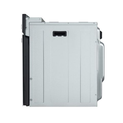 В модели предусмотрено 4 уровня боковых направляющих для противней, что позволяет удобно распределять пространство внутри шкафа. Дверца с двумя стеклами создает "холодный фронт", предотвращающий ожоги, и обеспечивает безопасное использование даже в условиях интенсивного нагрева. Уникальная особенность — тангенциальное охлаждение, сохраняющее мебель рядом с духовкой в прохладном состоянии.