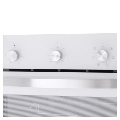 Этот белоснежный встраиваемый духовой шкаф привнесет в вашу кухню гармонию и стиль. Объем устройства составляет 56 литров, а ширина — стандартные 60 см, что делает его подходящим для различных кухонных интерьеров. Фронтальная панель изготовлена из высококачественного жаропрочного тонированного стекла, которое придает устройству современный и элегантный вид.