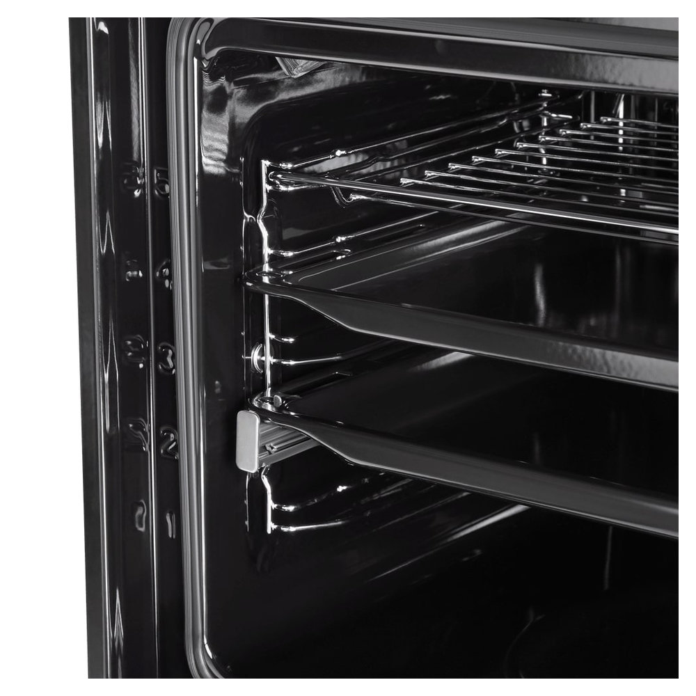 - Технология «Холодный фронт» с тремя стеклами: Три слоя стекла в дверце с воздушными прослойками создают превосходный теплоизоляционный барьер. Внешняя поверхность дверцы нагревается не более чем до 50°C, что делает ее безопасной для прикосновения и защищает соседнюю мебель.