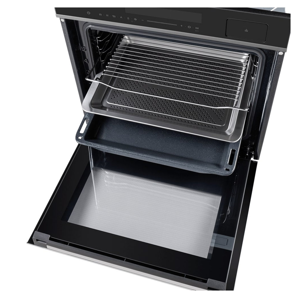 - Автоматизация и удобство: 25 программ автоменю (для мяса, рыбы, выпечки, пиццы и т.д.) берут на себя все расчеты. Плавный доводчик дверцы обеспечивает тихую и аккуратную работу, а паровая очистка позволяет легко поддерживать чистоту.