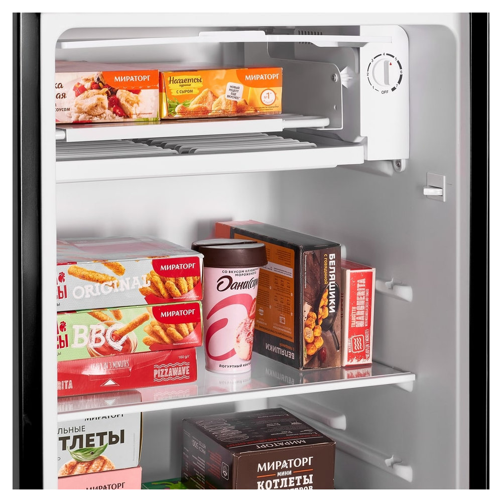 Прибор обладает полезным объемом 85 литров (общий объем 92 л), что обеспечивает достаточное пространство для хранения продуктов. Внутренняя организация включает: