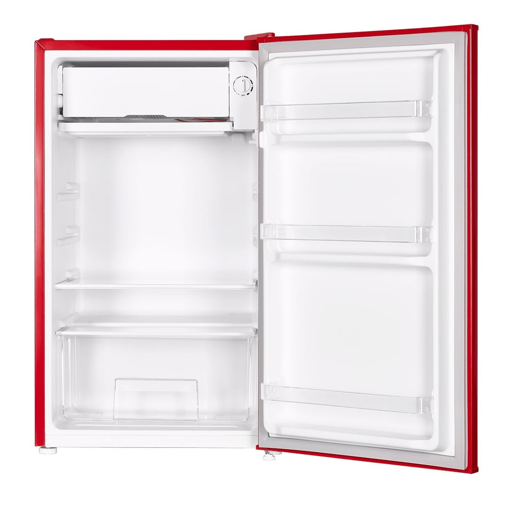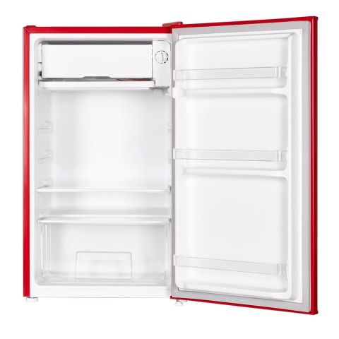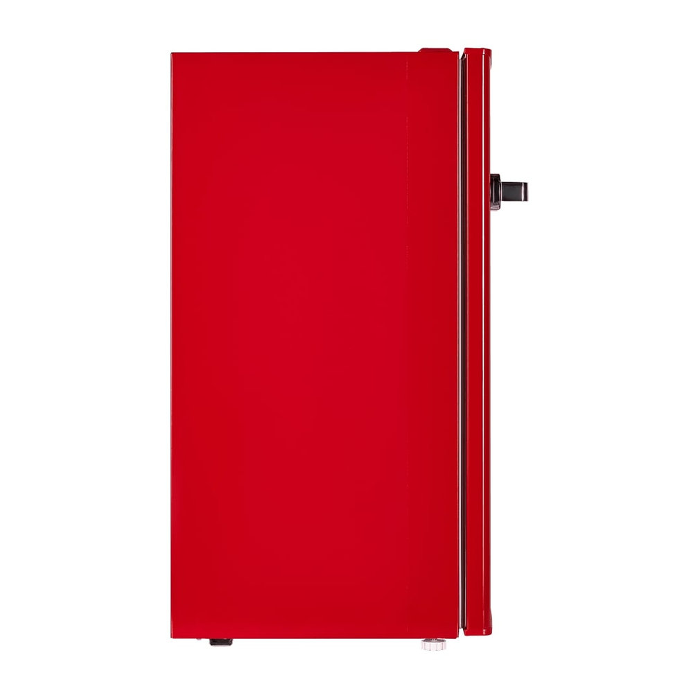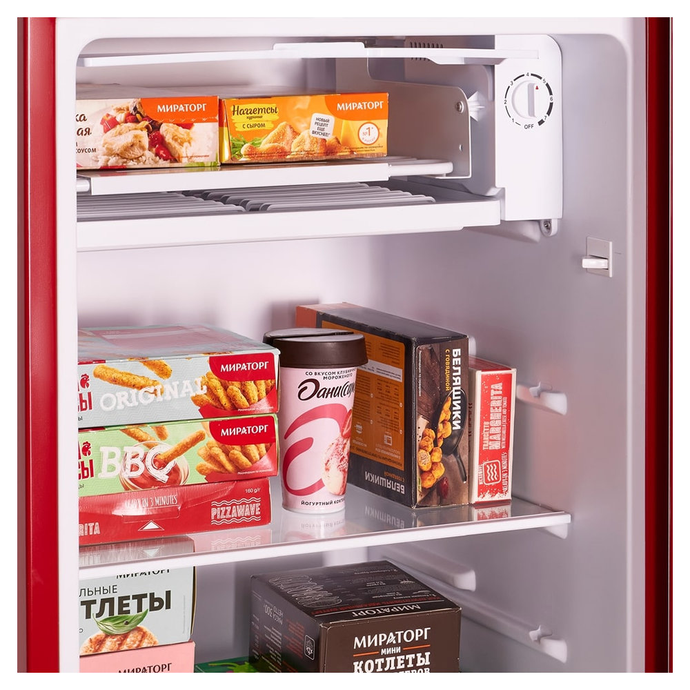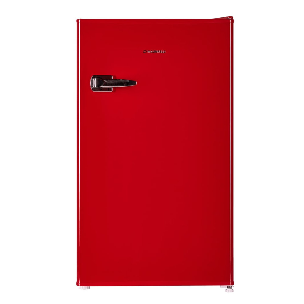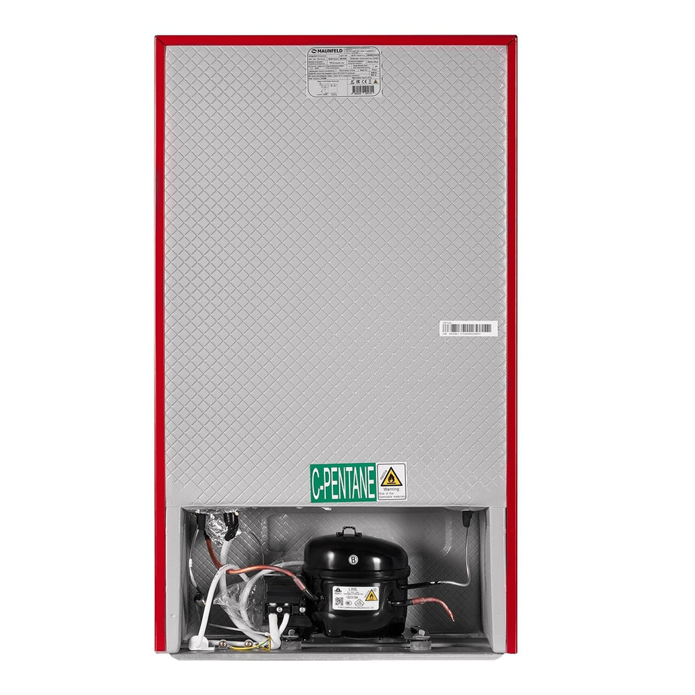 Холодильник Maunfeld MFF83RR выделяется своим ярким красным цветом и эмалированным фасадом, создавая стильный акцент в интерьере кухни. Прибор обладает общим объемом 92 литра и полезным объемом для хранения продуктов 85 литров.