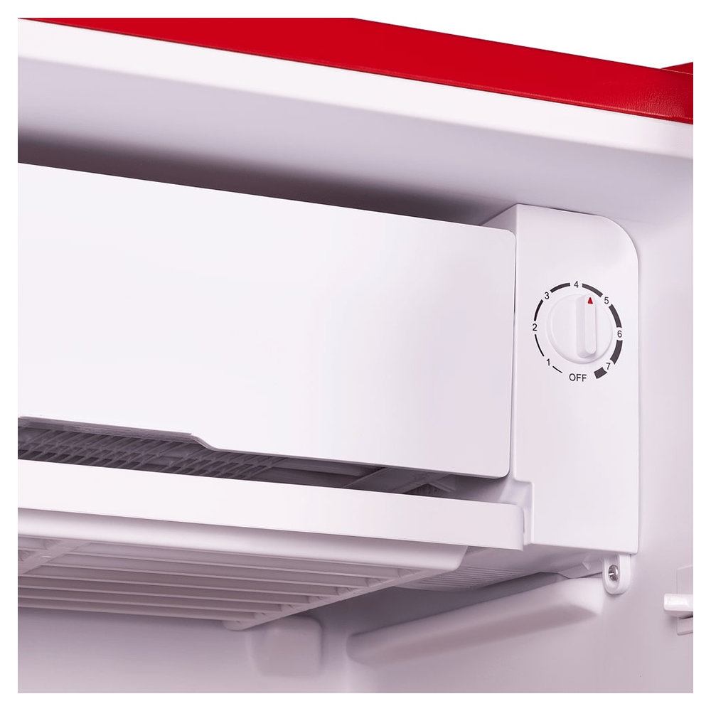 Холодильник оснащен механическими поворотными переключателями для простого управления и регулировки температуры. Дверной упор можно перевешивать, что позволяет адаптировать прибор под любую планировку.