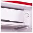 Внутреннее пространство организовано функционально: оно включает две регулируемые по высоте полки из закаленного стекла, один ящик для овощей и фруктов, три полки на двери, а также два лотка для яиц в комплекте. Яркая внутренняя подсветка на лампе накаливания обеспечивает удобный обзор содержимого.