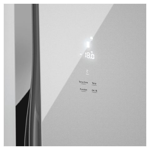 - Стеклянный фасад — придает холодильнику современный и элегантный вид, легко вписывающийся в интерьер кухни.