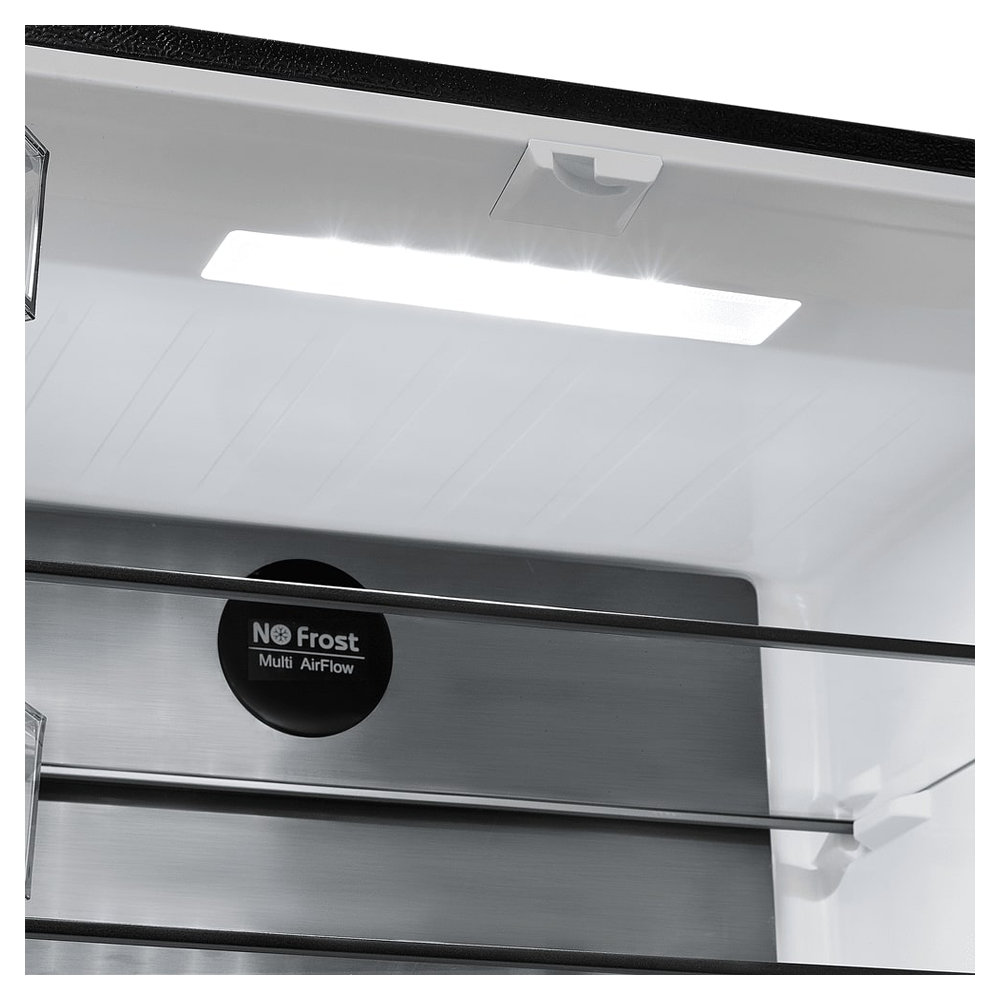 - Система No Frost — предотвращает образование инея в обеих камерах, обеспечивая стабильную работу и исключая необходимость ручного размораживания.