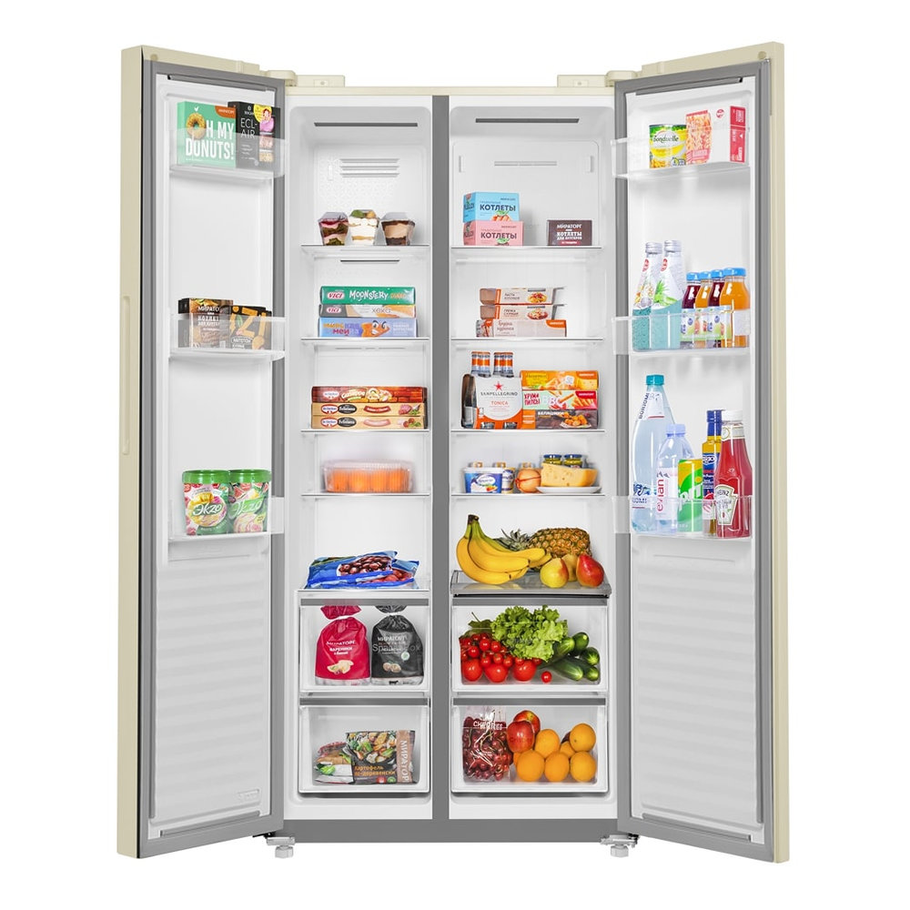 - Светодиодная подсветка — обеспечивает яркое и равномерное освещение внутреннего пространства для удобного поиска продуктов.