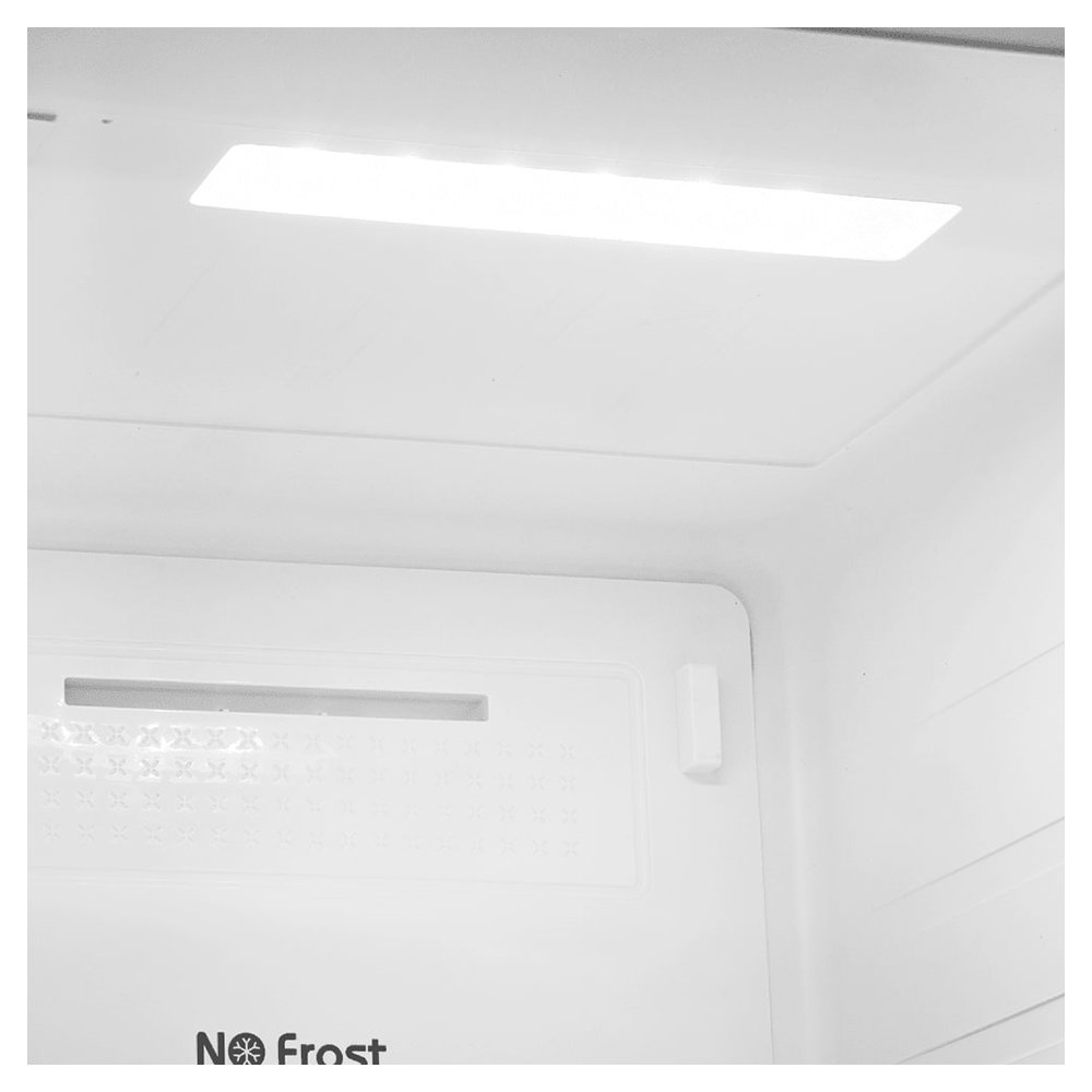 - Система No Frost — предотвращает образование инея в обеих камерах, полностью исключая необходимость ручного размораживания.