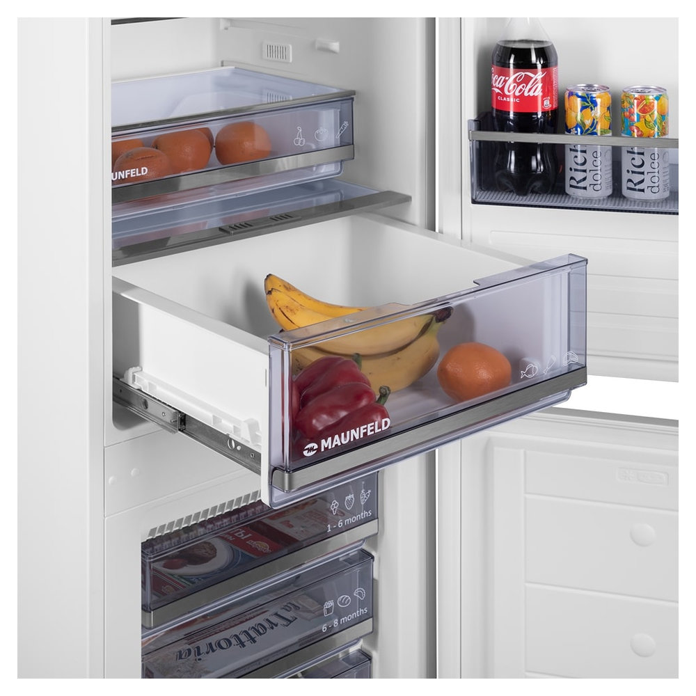Холодильник-морозильник встраиваемый MAUNFELD MBF193NFFWGR Простор для хранения и идеальный порядок Габариты и материалы: Высота — 193 см,...