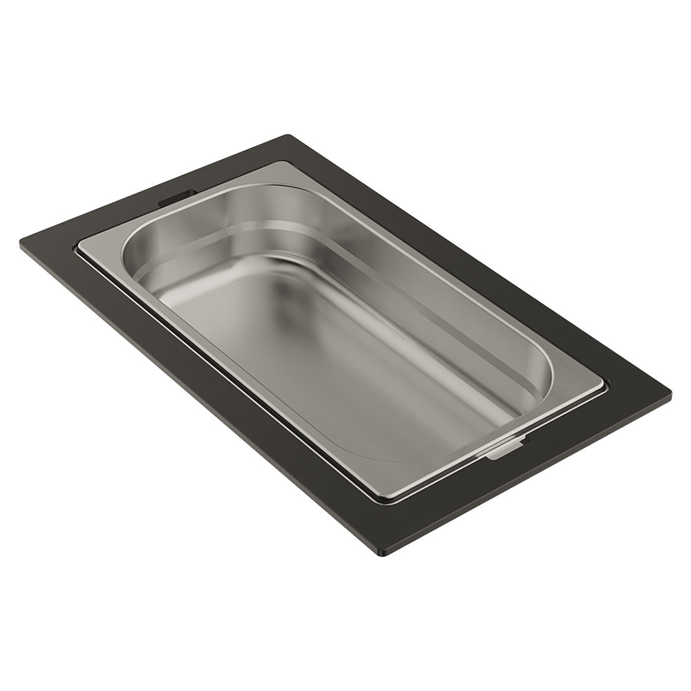 Конструкция подставки тщательно продумана: она без труда устанавливается на внутренние ступенчатые направляющие моек коллекций SINTESI и KITAGAWA, экономя пространство и поддерживая кухню в идеальном порядке.
