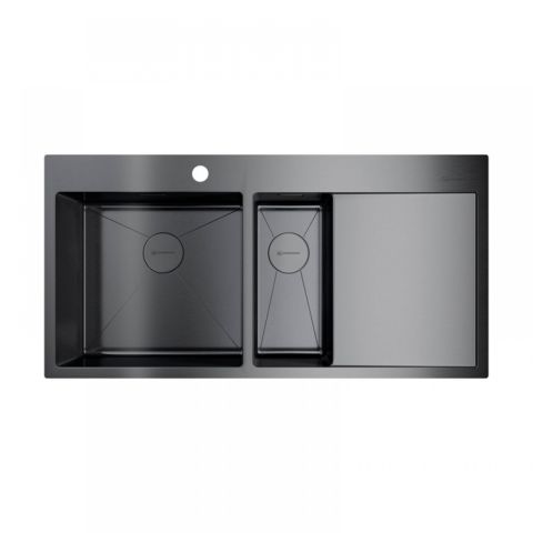Мойка Omoikiri Akisame 100-2-GM-L – воплощение надежности и элегантности для самой требовательной кухни. Изготовленная в Японии из высококачественной хромоникелевой нержавеющей стали SUS304 (18% Cr, 8% Ni), она обладает исключительной коррозионной стойкостью. Рекордная толщина стали 1.2 мм гарантирует максимальную прочность, устойчивость к ударам и деформациям на долгие годы. Эксклюзивное PVD-покрытие придает поверхности благородный оттенок "Вороненая сталь", обеспечивая не только превосходный внешний вид, но и дополнительную защиту от царапин и износа (гарантия на покрытие 2 года).