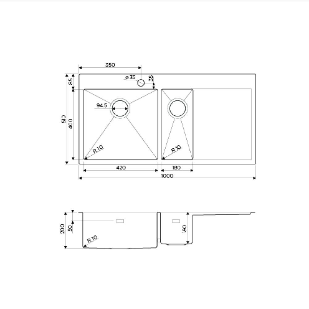 Элитная сталь SUS304: Мойка выполнена из высококачественной хромоникелевой нержавеющей стали (18% хрома, 8% никеля). Это гарантирует максимальную стойкость к коррозии и исключительную долговечность.