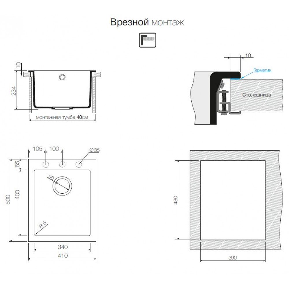 Кварцевый наполнитель обеспечивает исключительную прочность и термостойкость. Гладкая непористая поверхность устойчива к загрязнениям и легко очищается. Идеально подходит для врезного монтажа в кухонный модуль 40 см.
