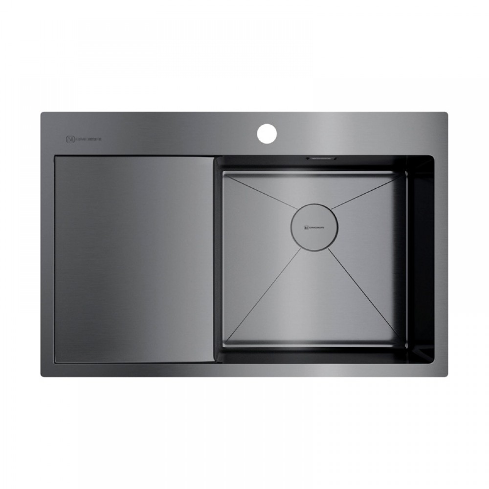 Мойка Omoikiri Akisame 78-GM-R – флагманская модель для просторных кухонь. Изготовлена из японской нержавеющей стали SUS304 (18% хрома, 8% никеля) толщиной 1.2 мм с PVD-покрытием "Вороненая сталь", обеспечивающим благородный матовый оттенок и защиту от царапин.