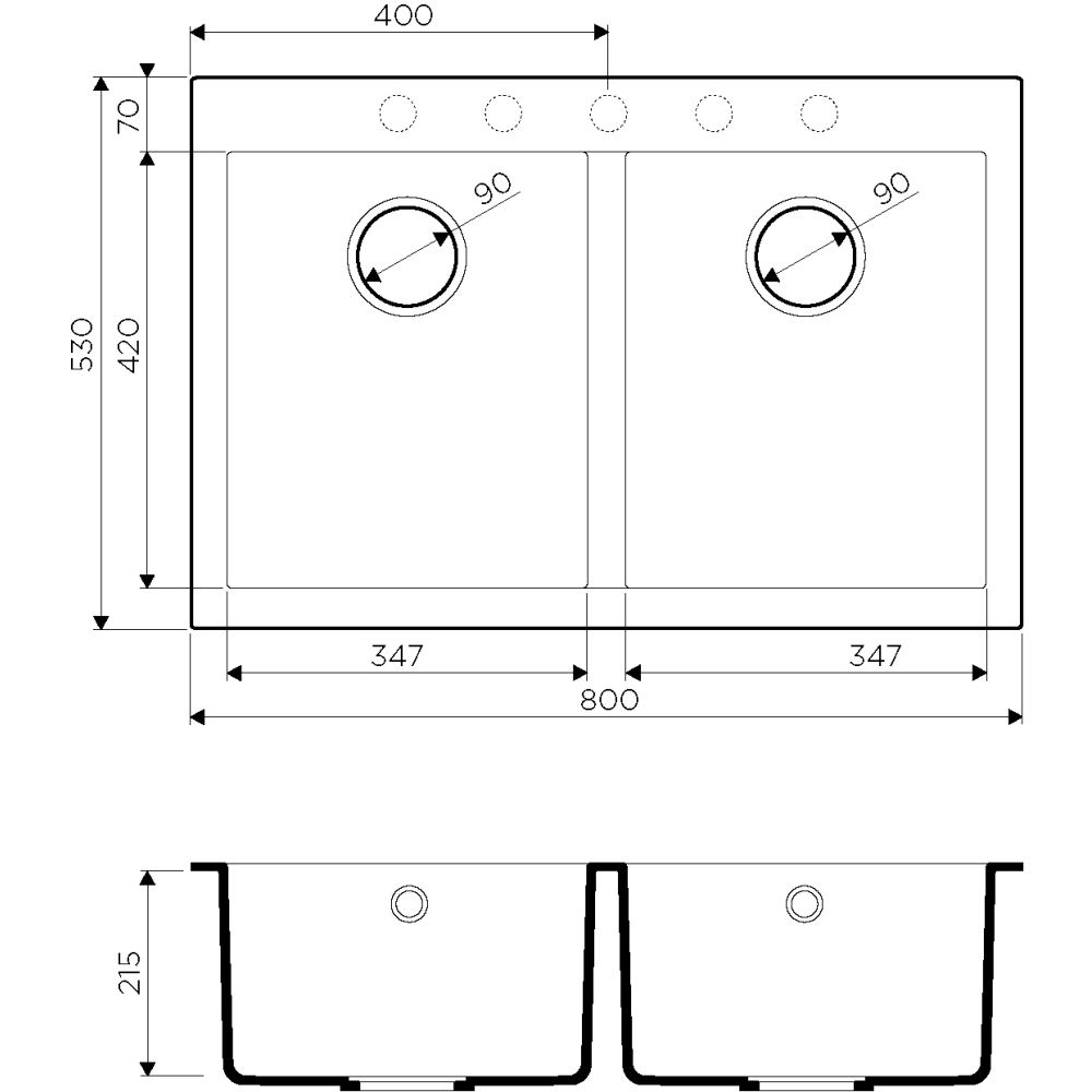 Мойка Omoikiri Bosen 80-2-SA изготовлена из высокотехнологичного материала Tetogranit толщиной 10 мм. Две одинаковые чаши размером 347×420 мм и глубиной 200 мм обеспечивают комфорт при работе с большим количеством посуды.