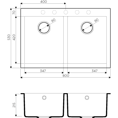 Мойка Omoikiri Bosen 80-2-WH изготовлена из высокотехнологичного материала Tetogranit толщиной 10 мм. Две одинаковые чаши размером 347×420 мм и глубиной 200 мм обеспечивают комфорт при работе с большим количеством посуды.