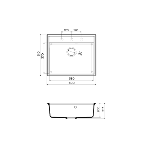 Модель Daisen-60-PA изготовлена из композитного материала Artgranit (кварц + гранит + полимер). Увеличенная чаша 530×370 мм идеальна для просторных кухонь.