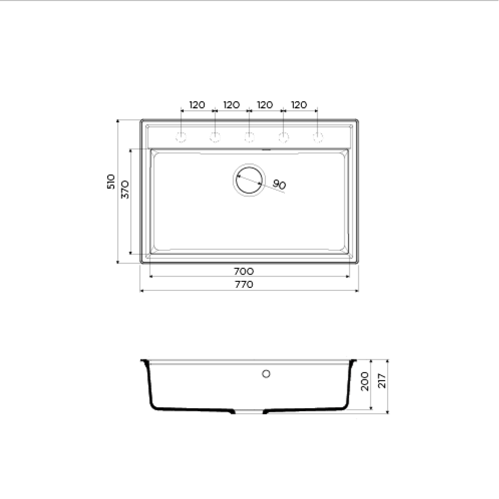Модель Daisen-77-BE изготовлена из инновационного материала Artgranit толщиной 10 мм. Увеличенные размеры 770×510 мм и глубокая чаша 200 мм обеспечивают комфорт при работе с большим количеством посуды.