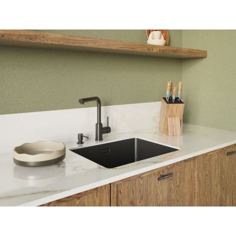• Удобство монтажа: Подходит для установки как в кухне, так и в ванной комнате, создавая единый стилистический ансамбль с мойками и смесителями OMOIKIRI.