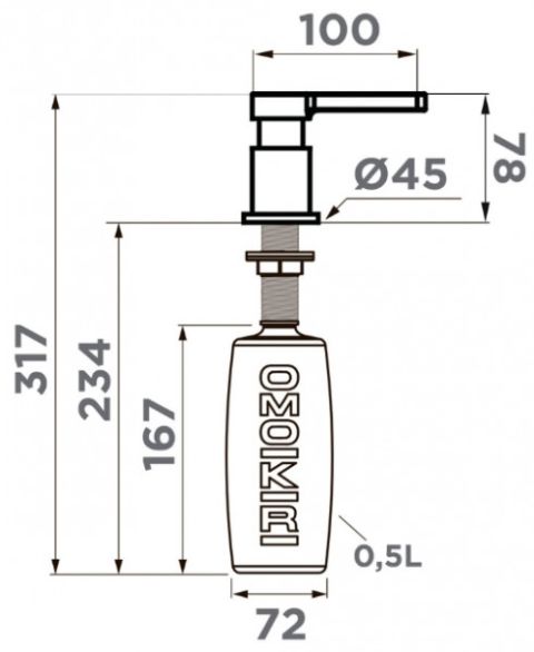 Встраиваемый дозатор для моющего средства OM-04-C латунь/хром Дозатор для жидкого мыла OMOIKIRI OM-04-C идеально сочетает в себе стиль и...