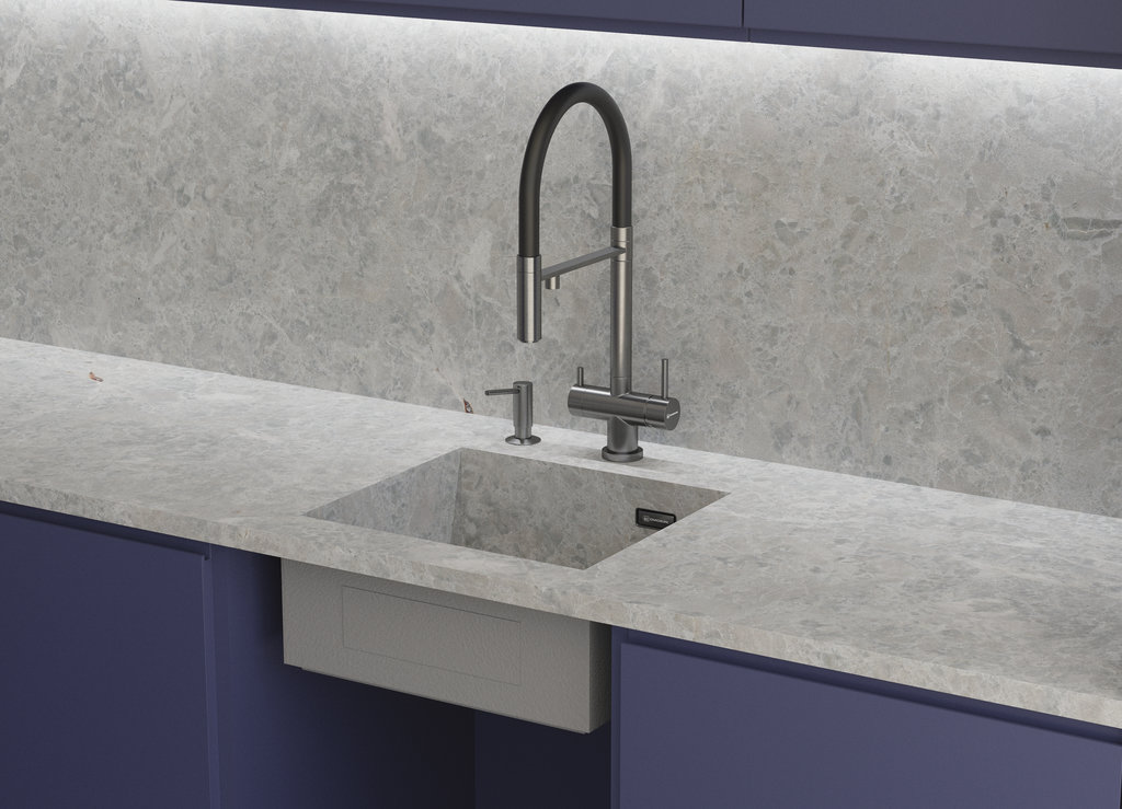 Подходит для установки в столешницы толщиной от 12 мм — совместима с композитными, акриловыми, кварцевыми и керамическими материалами.
