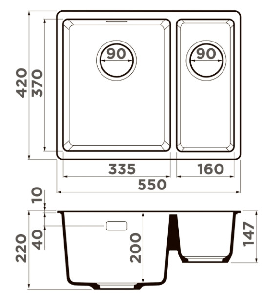 • Помимо гранита, в состав материала входит молотый кварц мельчайших размеров, которому характерны непревзойденная прочность и устойчивость к природным и химическим воздействиям. Свойства данного компонента вместе с долговечностью гранита обеспечивают мойке прочность и делают её устойчивой к любым механическим повреждениям: деформациям, сколам;