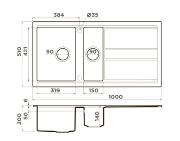 | Глубина мойки | 20 / 14 см |