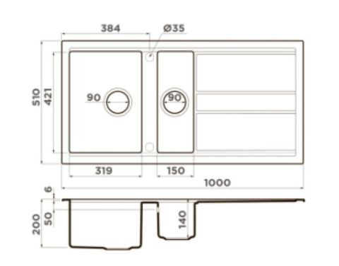 • Материал выдерживает высокие температуры до 280°С (но не стоит ставить на поверхность мойки горячие сковородки и кастрюли, т.к их температура может достигать 500°С);