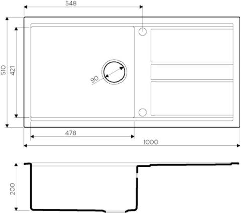 • Материал выдерживает высокие температуры до 280°С (но не стоит ставить на поверхность мойки горячие сковородки и кастрюли, т.к их температура может достигать 500°С);