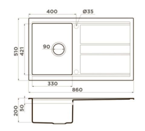 • Материал выдерживает высокие температуры до 280°С (но не стоит ставить на поверхность мойки горячие сковородки и кастрюли, т.к их температура может достигать 500°С);