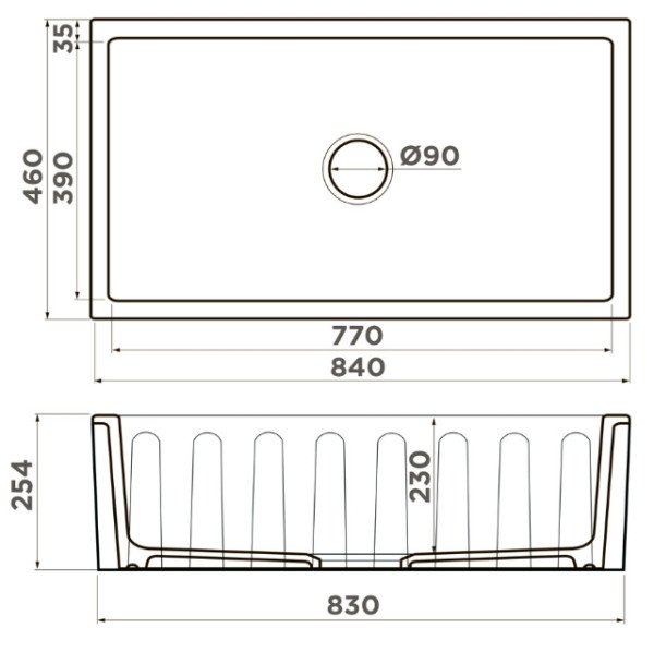 | Вырез под мойку | По образцу мойки |