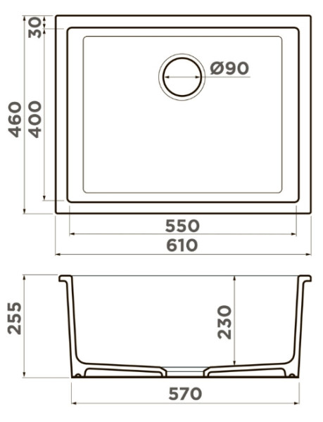 Глубина мойки 25,5 см