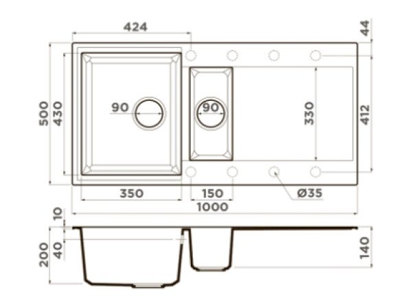 • Мойки из «Tetogranit» устойчивы к механическим повреждениям. Входящий в состав кварцевый песок представляет собой кристаллическую структуру, что придаёт мойке устойчивость к воздействию различных кислот и щелочей, гарантируя неизменность внешнего вида мойки;