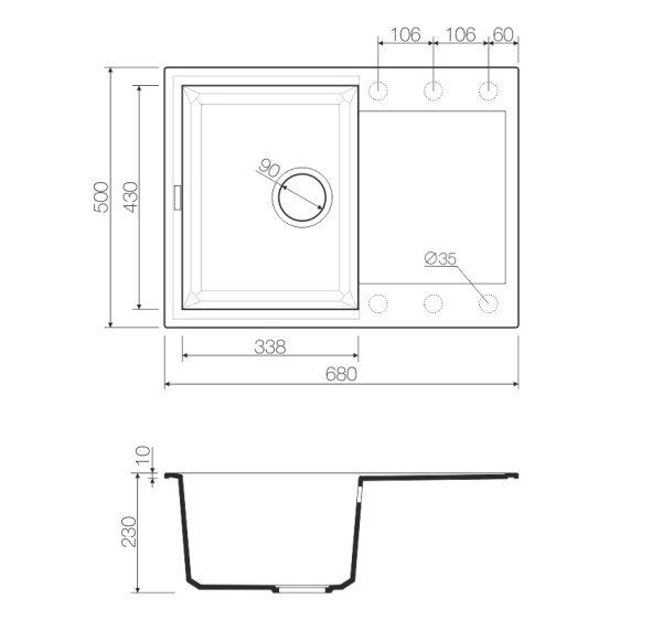 • Материал выдерживает высокие температуры до 280°С (но не стоит ставить на поверхность мойки горячие сковородки и кастрюли, т.к их температура может достигать 500°С).