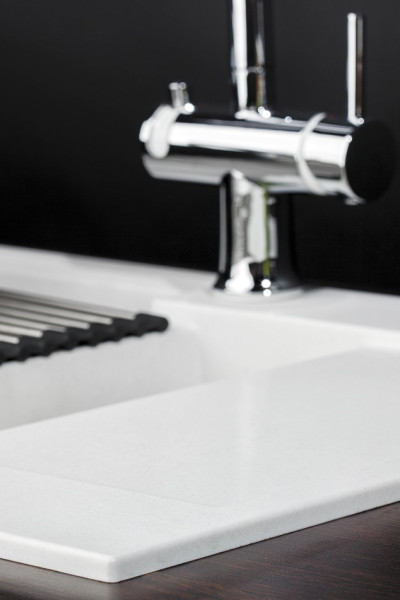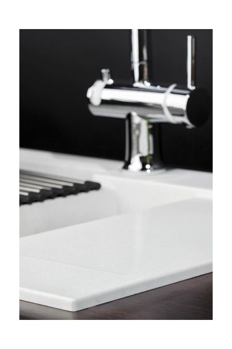 • Материал выдерживает высокие температуры до 280°С (но не стоит ставить на поверхность мойки горячие сковородки и кастрюли, т.к их температура может достигать 500°С).