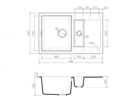 | Глубина мойки | 22 / 12 см |