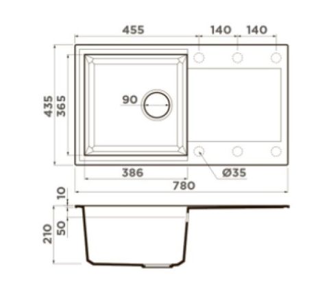 • Материал выдерживает высокие температуры до 280°С (но не стоит ставить на поверхность мойки горячие сковородки и кастрюли, т.к их температура может достигать 500°С).