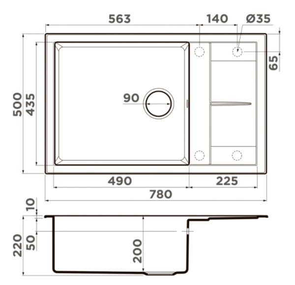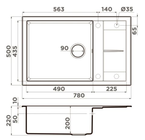 • Материал выдерживает высокие температуры до 280°С (но не стоит ставить на поверхность мойки горячие сковородки и кастрюли, т.к их температура может достигать 500°С).