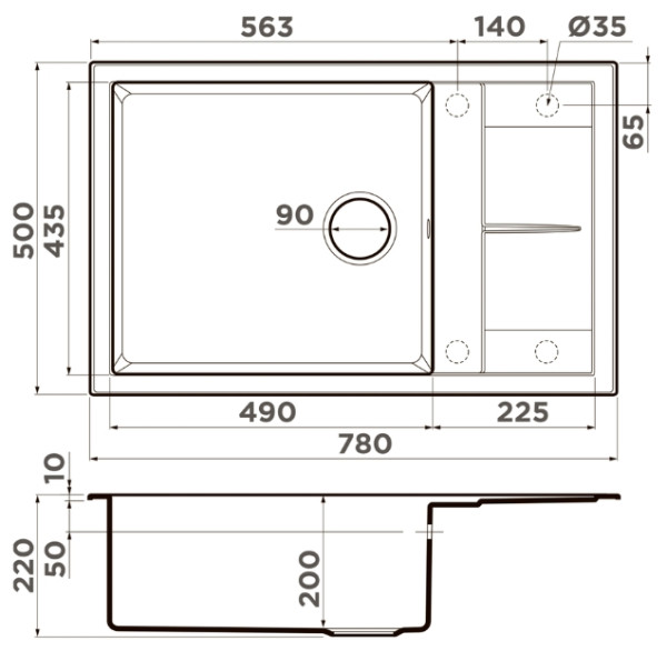 • Материал выдерживает высокие температуры до 280°С (но не стоит ставить на поверхность мойки горячие сковородки и кастрюли, т.к их температура может достигать 500°С);