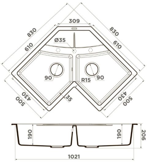 | Глубина мойки | 20.6 см |