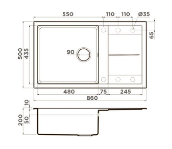 • Материал выдерживает высокие температуры до 280°С (но не стоит ставить на поверхность мойки горячие сковородки и кастрюли, т.к их температура может достигать 500°С).